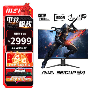 微星新款32寸显示器MAG321CUP上架销售,价格为2999元。
