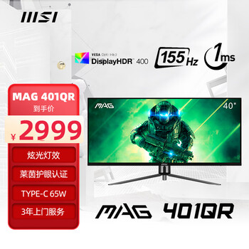 微星新款40英寸带鱼屏显示器MAG 401QR开售,售价2999元。