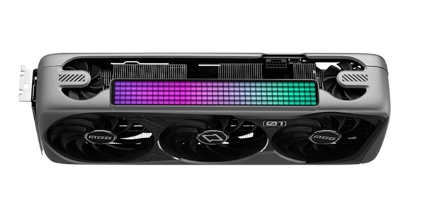 此外,铭瑄在显卡顶部设计了两个金属触点,通过磁吸式的设计可以将MGG点阵氛围灯/流彩氛围灯套件安装在显卡,加上专用软件,通过简易的操作,实现多种玩法和灯效效果。