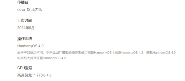 据悉,华为nova 12活力版支持鸿蒙智慧通信,可改善地铁等弱信号场景,支持抖音视频预加载。