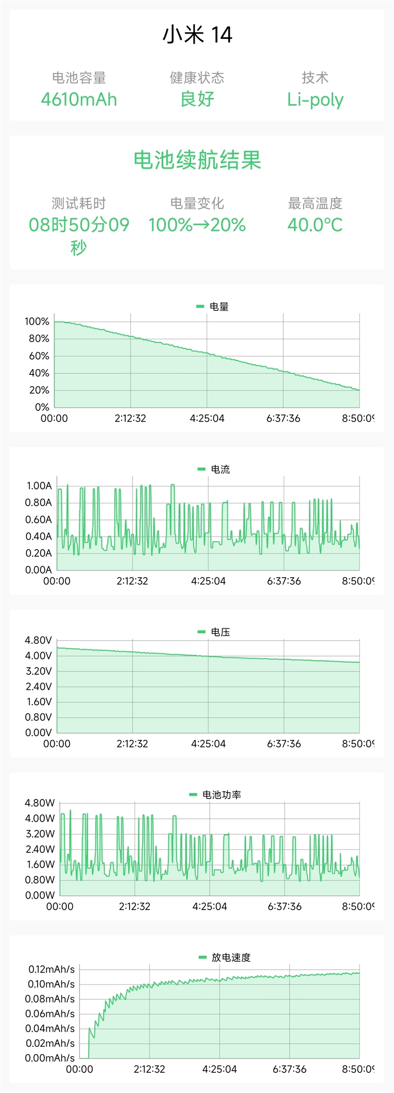 也就是说小米14,总续航时长约在10小时左右,按照一般用户的使用情况,完全满足一整天的间歇性使用时长。
