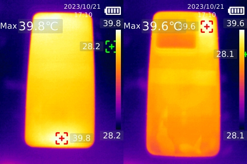 温度方面,正面最高温度39.8摄氏度,背面最高温度39.6摄氏度。