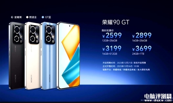 工业设计上,荣耀90 GT以赛道双纹、性能引擎为灵感,打造“性能引擎”镜头和“赛道双纹”背板,带来了三款全新配色:GT蓝、燃速金、星曜黑。