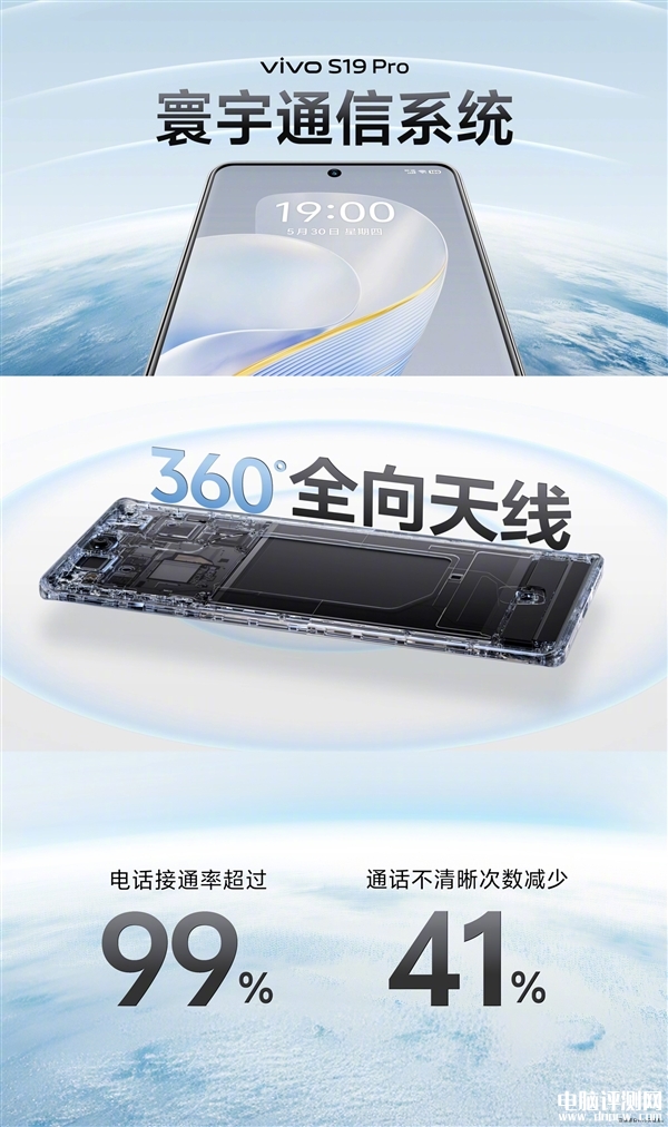 另外,S19 Pro还搭载全新寰宇通信系统,拥有全新设计360°全向天线,在只有一格信号的环境,电话接通率超过99%。