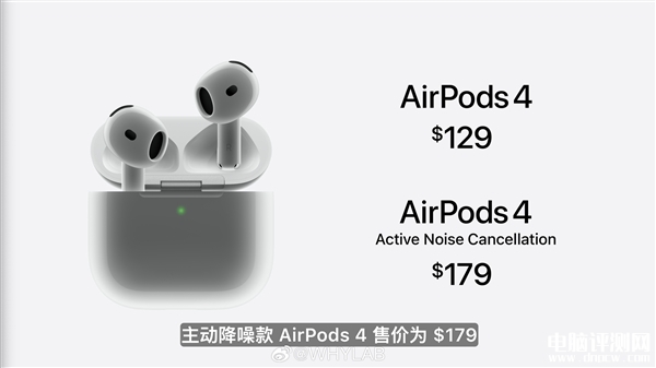 全新的AirPods 4正式发布,国行版售价是999元,支持主动降噪的AirPods 4售价1399元,9月20日发售。